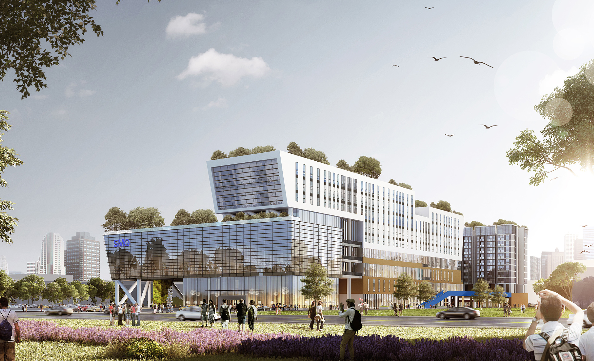 项目以“滨海之舰·东方领航”作为理念,力求打造成为集实验、研发、展示及生活于一体的综合检验检测园区。群体强调有机融合,各功能体块之间相互咬合,堆叠连接,丰富的形体变化,形成滨海航舰之势。顺应互联网时代趋势,产业园由集约高效的传统模式转型成新一代绿色办公产业园。我们希望围绕QI技术发展,打造新型研发机构,成为深绍合作新支点、国际化创新合作新平台。基于这些条件,未来,我们相信深检集团华东总部基地将会成为一个以产业集聚效应为载体,融合活力、时尚元素,并实现生态、科技汇集的办公园区。